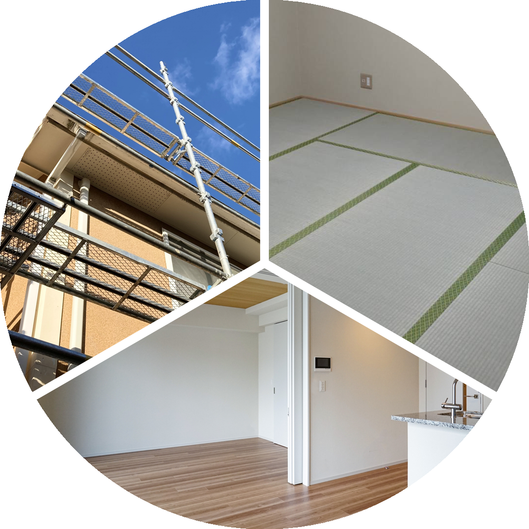 建物内外のリフォームから、外壁・内壁の塗装、エアコン設置や電気系統のトラブル対応等・・